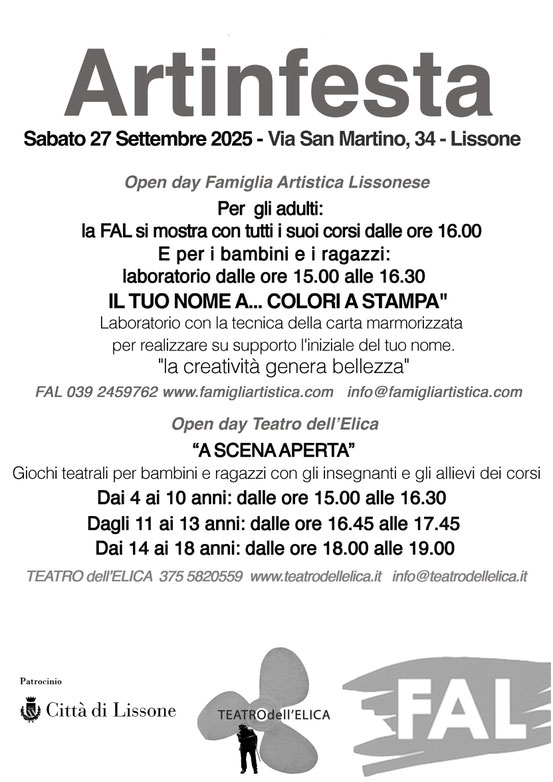 Attenzione! L’orario della dimostrazione di lavoro dedicata agli Adolescenti che si terrà durante l’open day “Artinfesta” è stata spostata: si terrà intorno alle 17.